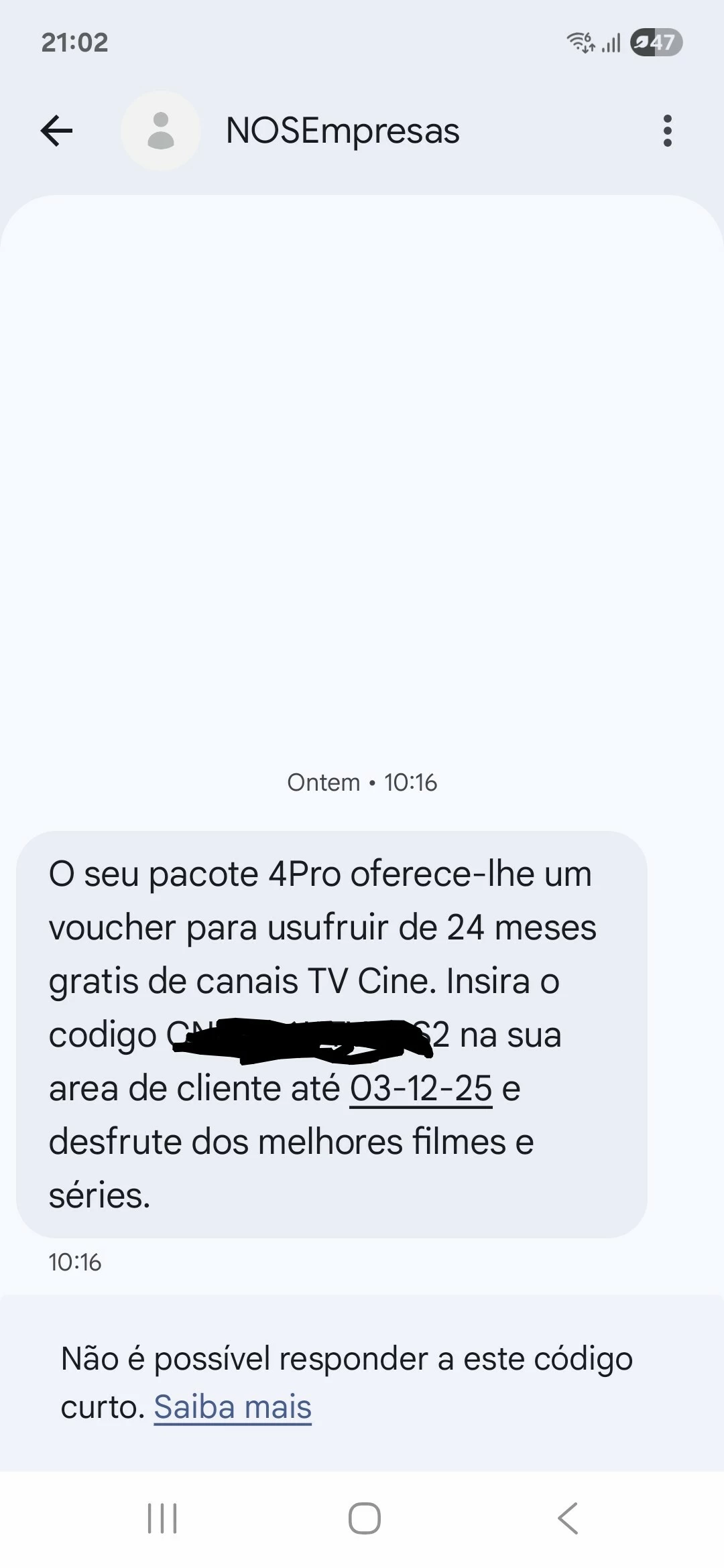 Já paguei a primeira fatura e nada de receber o código do voucher de 150€. Como faço para o receber?