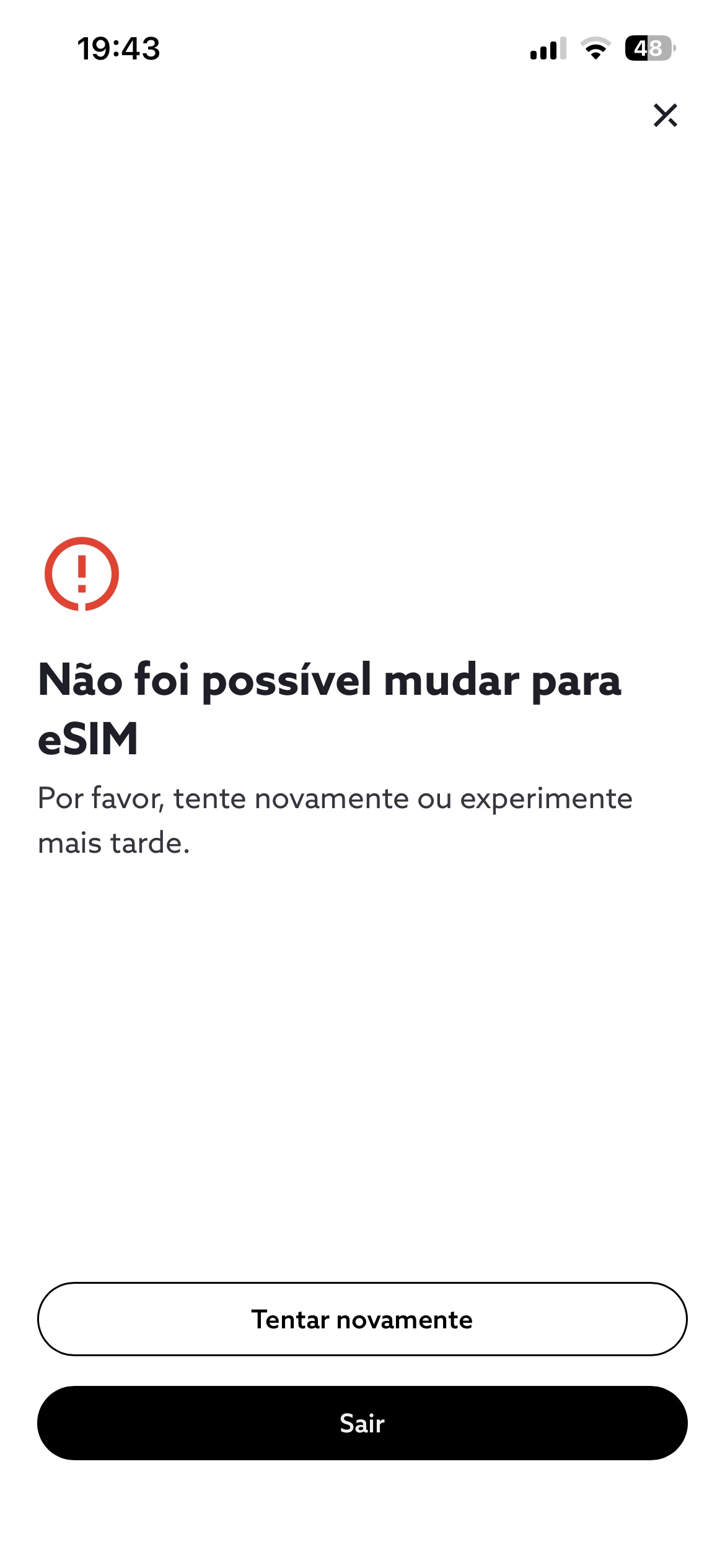 Quando eu tento passar do sim para eSIM através da app dá sempre um erro dizendo “tente novamente mais tarde” mas na tentei várias vezes e dá sempre o mesmo erro.