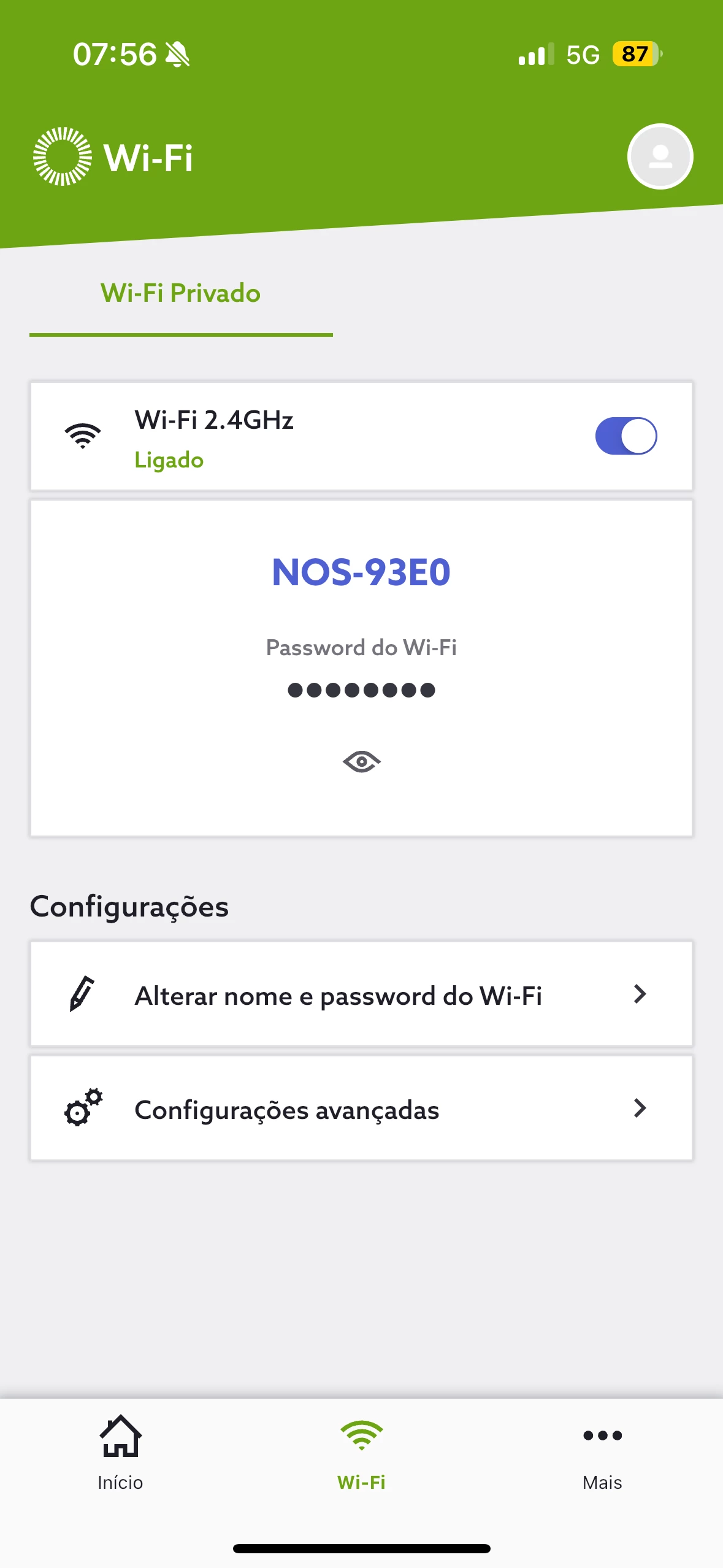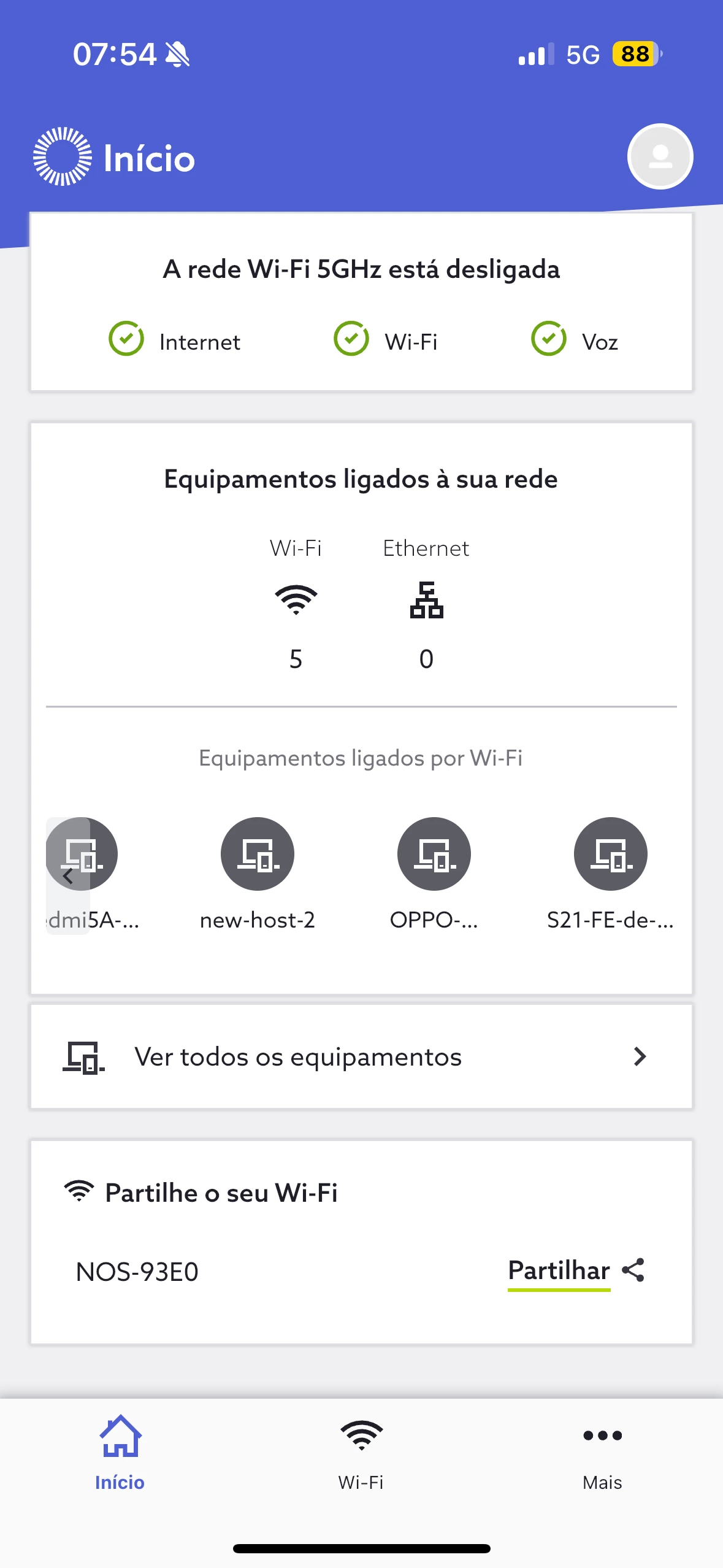 Estou a tentar ativar a rede Wi-Fi 5GHz através da app NOS Net, mas apenas aparece a opção da 2.4