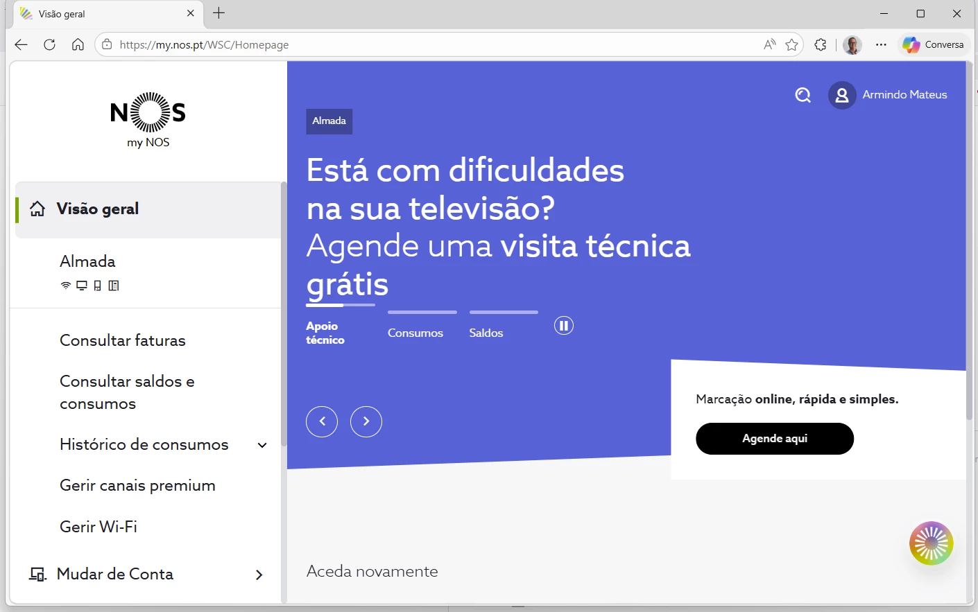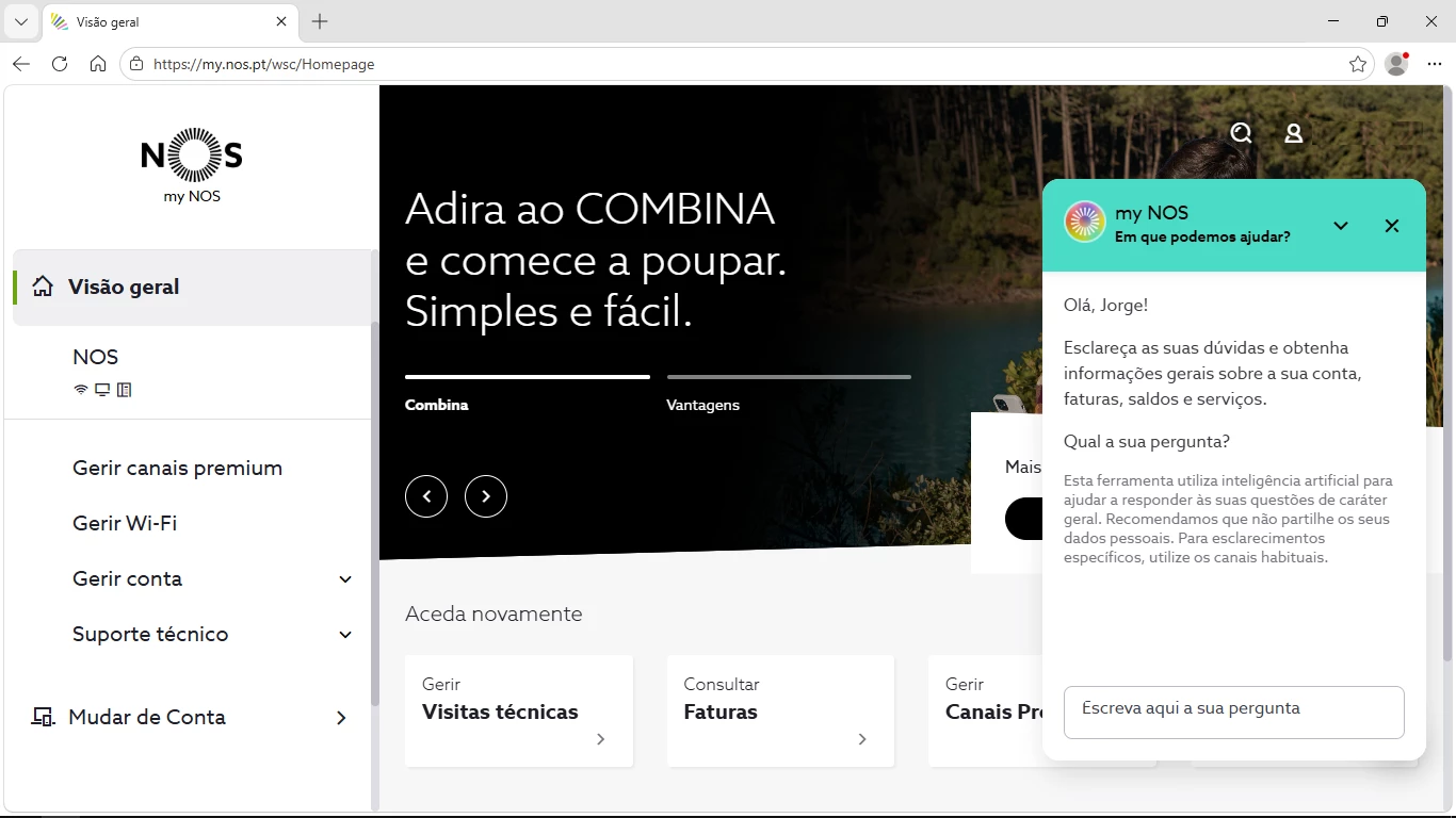 É necessário ter um registo na my NOS e tem de fazer o login para aceder ao Assistente Virtual.