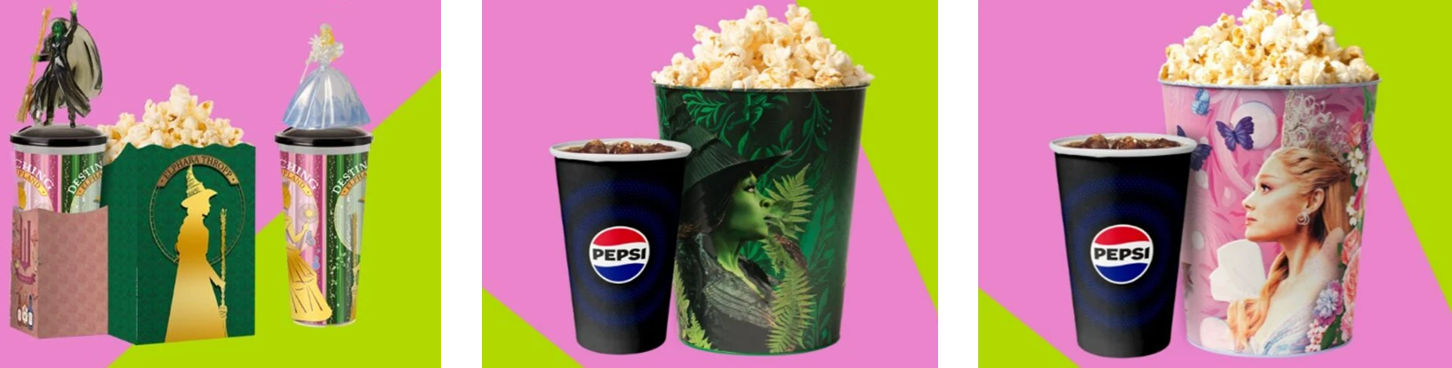 Para a ocasião da exibição do filme Wicked, estará disponível merchandising exclusivo. Os menus encontram-se acessíveis a todos os clientes, limitado aos cinemas aderentes e ao stock existente.