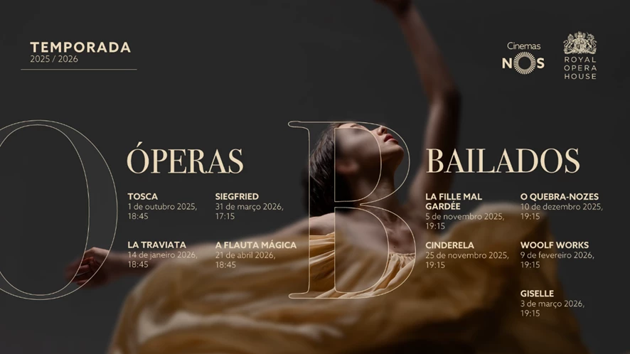 A temporada arranca a 1 de Outubro com a aclamada ópera "Tosca", e termina a 21 de Abril de 2026 com a encantadora "A Flauta Mágica". Entre estas datas, poderá assistir a 9 produções imperdíveis, das quais 6 são exibidas em Live e 3 em formato DCP, que proporciona uma imersão total na excelência artística da Royal Opera House.