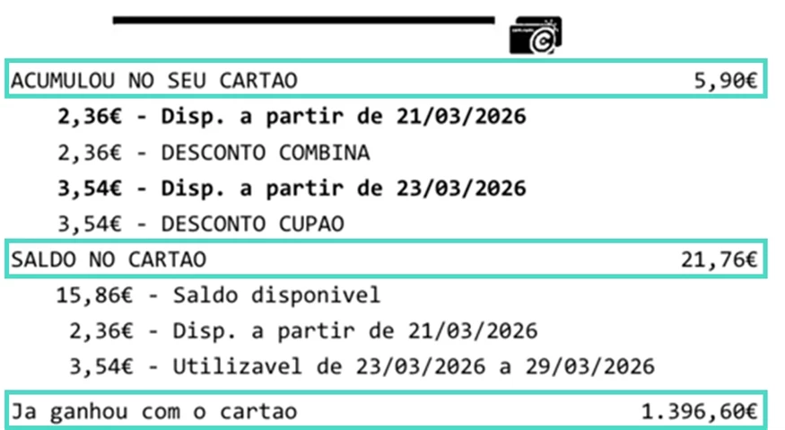 Já ganhou com o cartão: saldo acumulado em Cartão Continente desde a sua aquisição