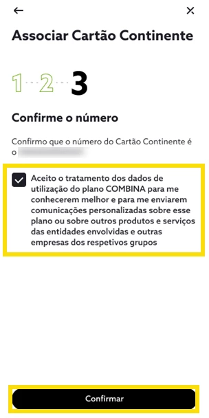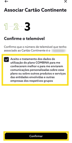 - Confirme o número do Cartão Continente e aceite o tratamento dos dados de utilização. Para avançar, selecione “Confirmar”;