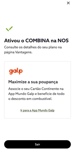 Para ativar o programa COMBINA na app my NOS, siga os seguintes passos: