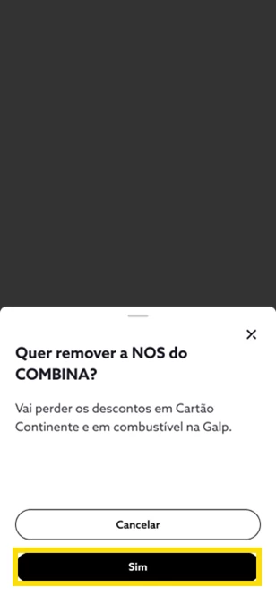 - Confirme que quer remover a NOS do COMBINA e selecione “Sim”;