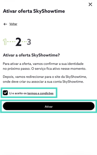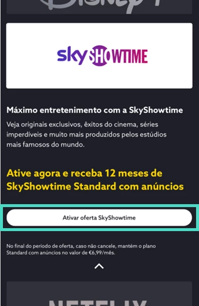 - Em “SkyShowtime”, selecione “Ativar oferta SkyShowtime”;