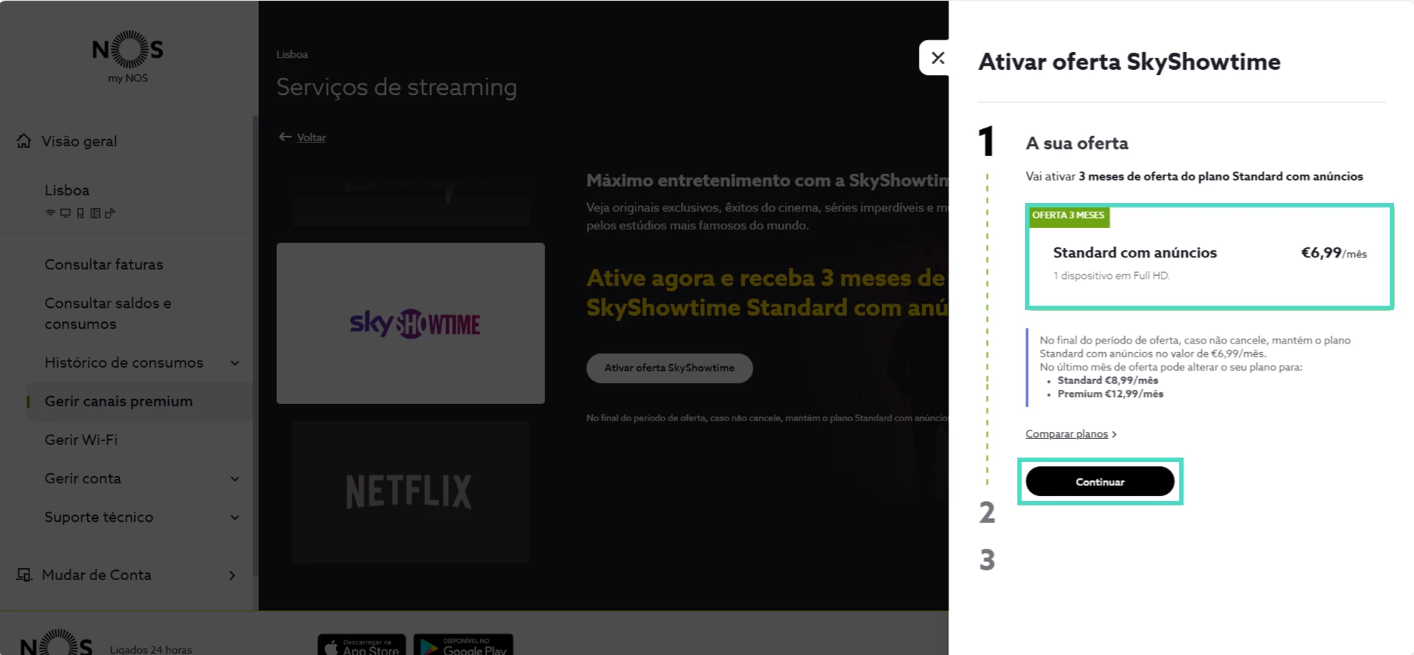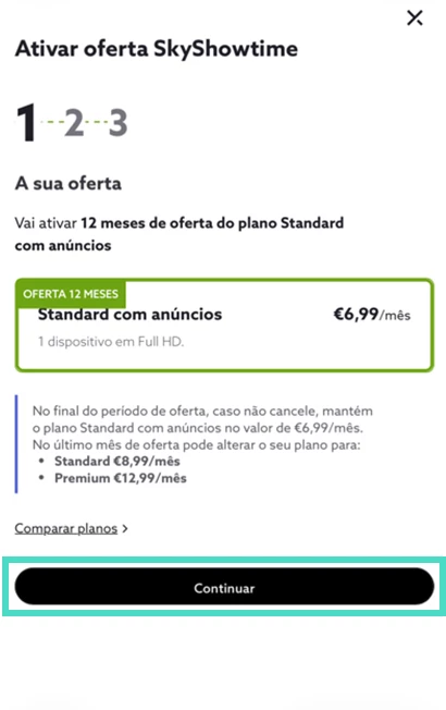 - Confirme a oferta que tem associada à sua conta e escolha “Continuar”;