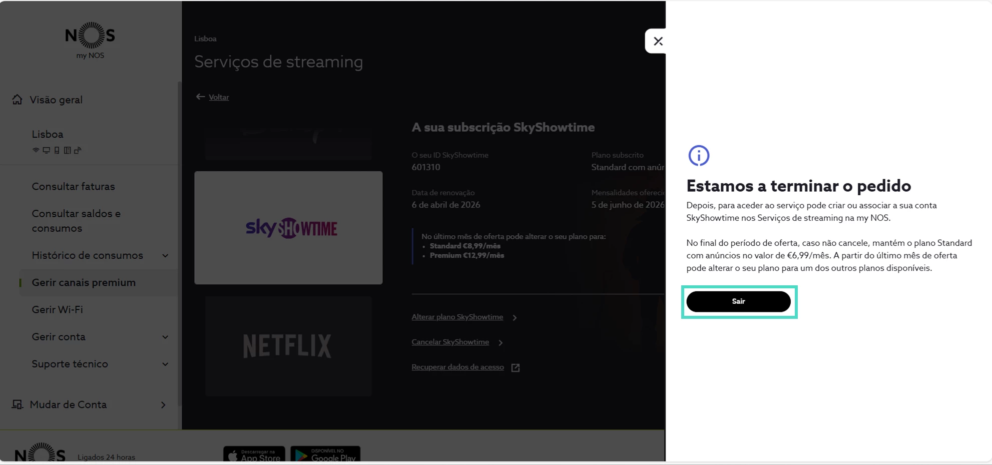 Ativar a oferta de mensalidades na app my NOS