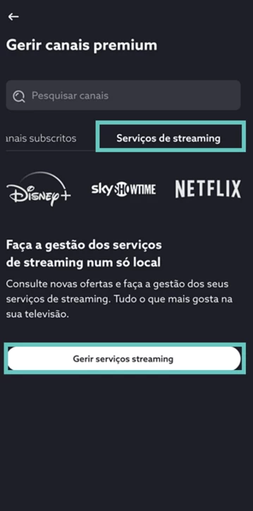 - De seguida, em “Serviços de Streaming”, escolha “Gerir serviços streaming”;