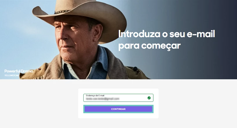 Caso já tenha conta SkyShowtime e pretenda associar o pagamento à fatura da NOS neste passo, indique o e-mail que se registou na SkyShowtime. - Introduza o seu e-mail e selecione “Continuar”;