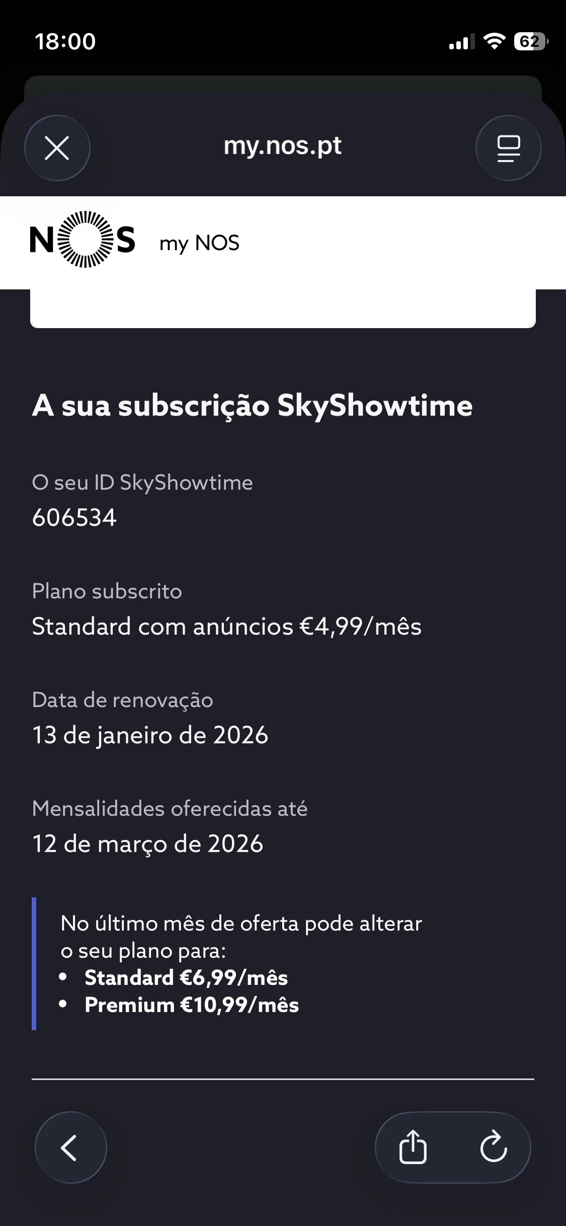 Para ativar a oferta de mensalidades SkyShowtime, na app my NOS, siga os seguintes passos: