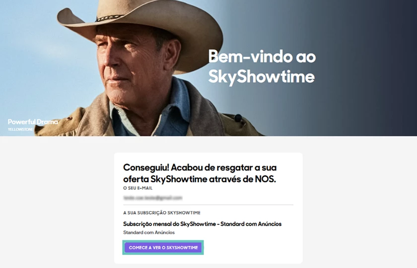 - Por fim, recebe a confirmação de ativação e pode começar a usufruir da oferta SkyShowtime, em “Comece a ver o SkyShowtime”.