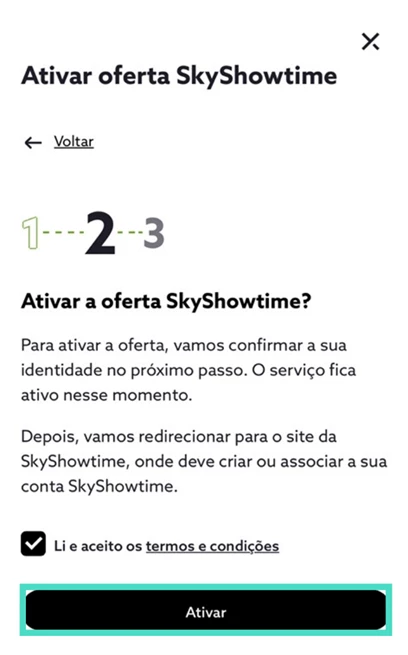 - Em “SkyShowtime”, selecione “Ativar oferta SkyShowtime”;