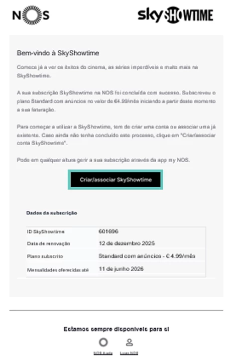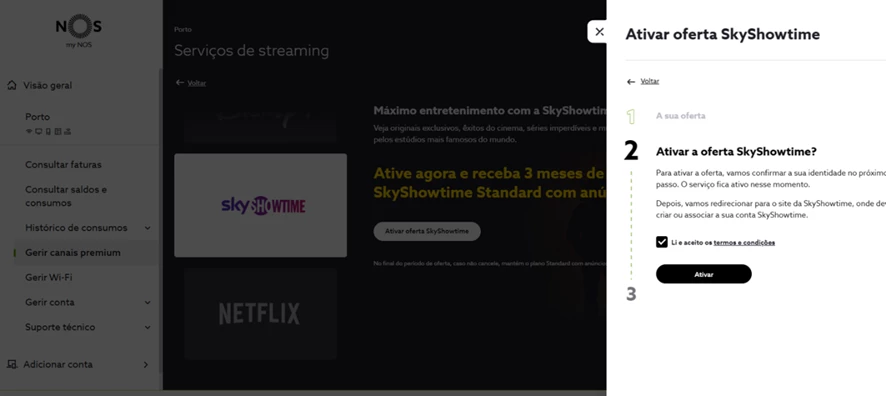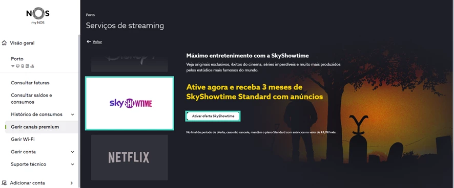 Saiba ainda como ativar a oferta de mensalidades SkyShowtime, em my.nos.pt, seguindo os passos abaixo: