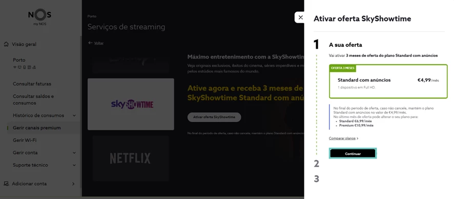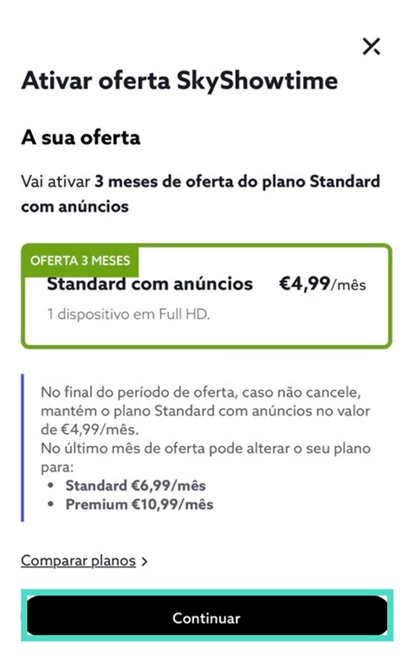 - Confirme a oferta que tem associada à sua conta e escolha “Continuar”;