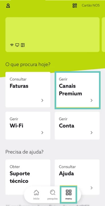- Aceda à app my NOS e, em “Menu”, selecione “Canais Premium”;
