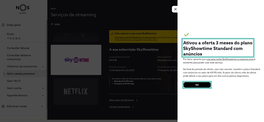 - Por fim, consulte o resumo da oferta que foi aplicada à sua subscrição SkyShowtime.