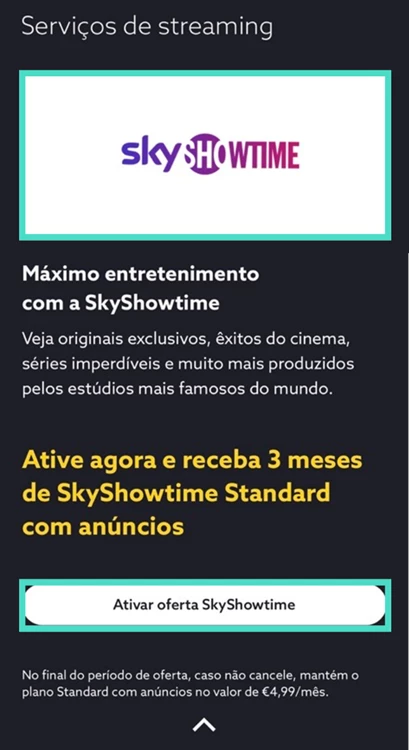 - De seguida, em “SkyShowtime”, selecione “Ativar oferta SkyShowtime”;