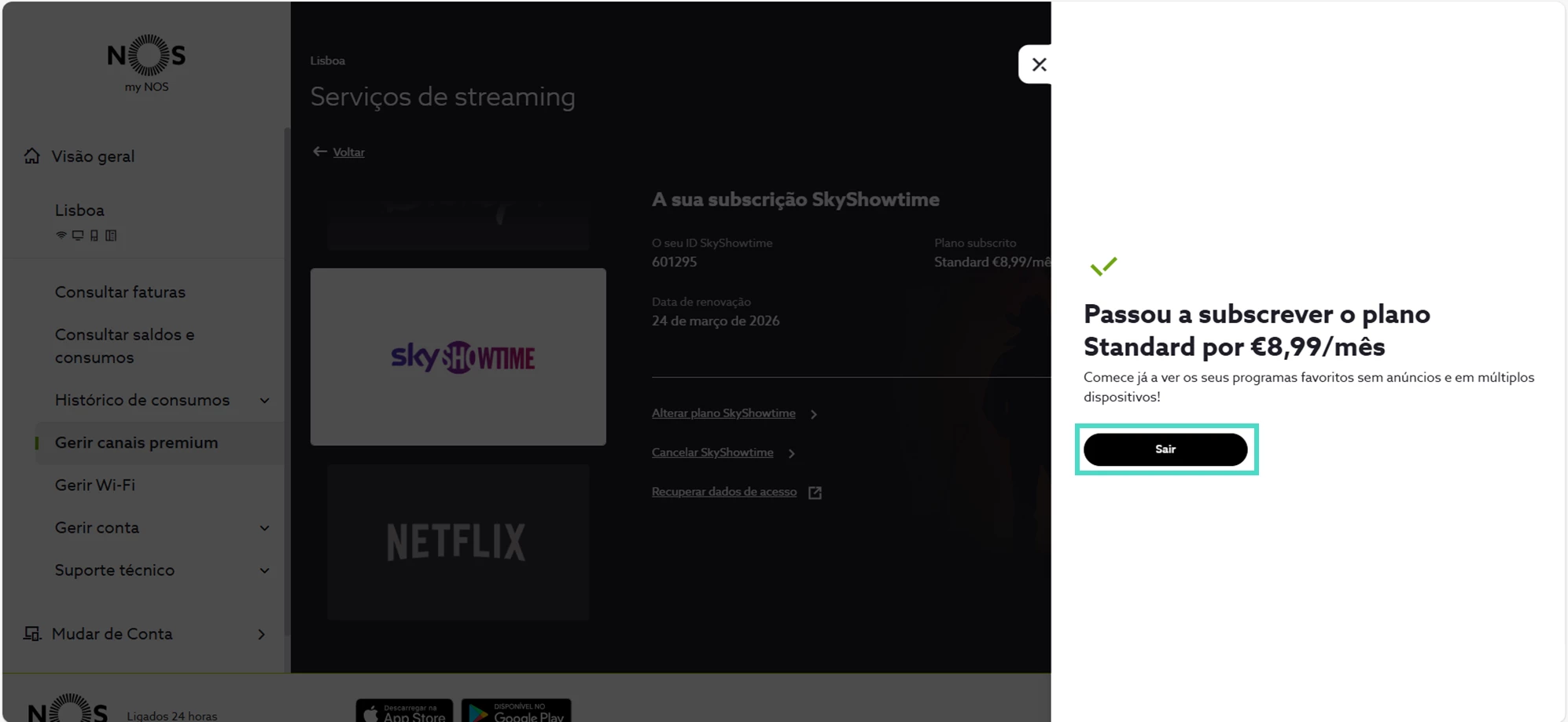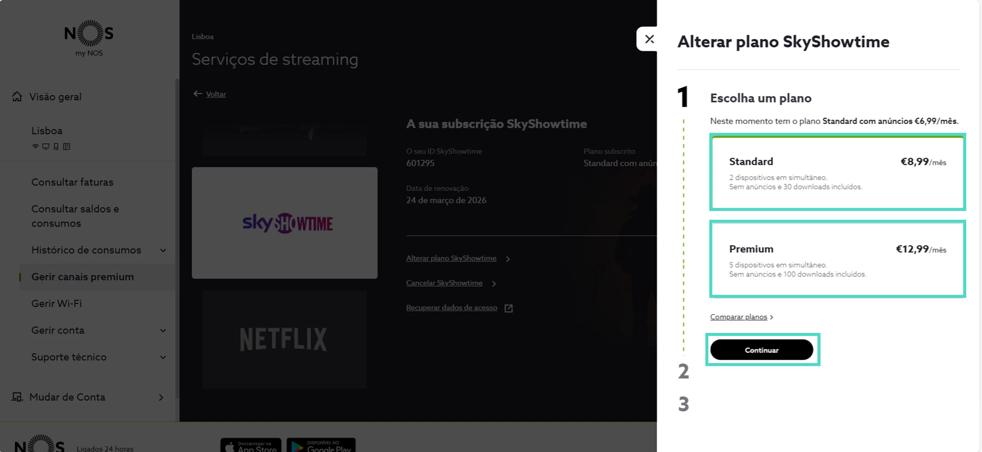 Saiba como alterar o plano SkyShowtime na área de cliente em my.nos.pt: