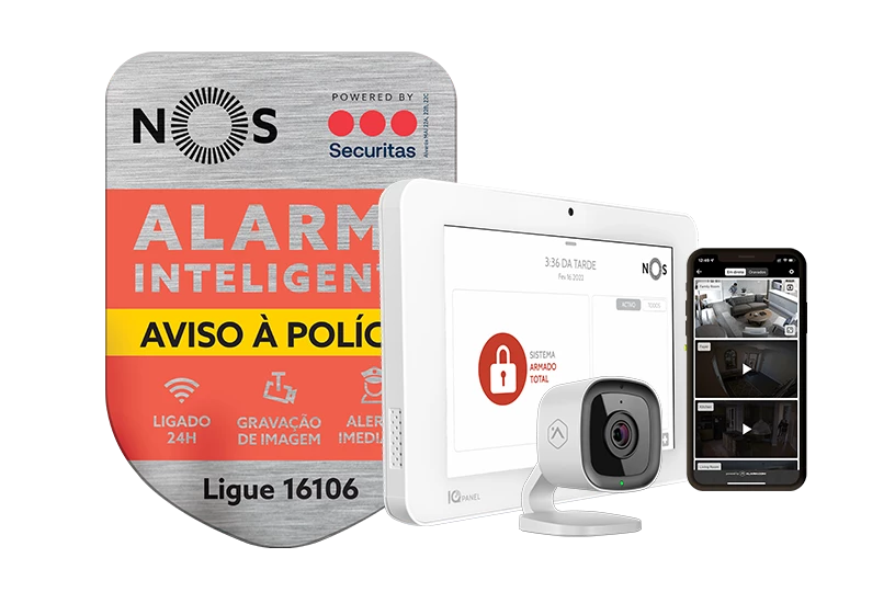 Um painel tátil que te permite armar ou desarmar o alarme, ativar a sirene e muito mais de forma rápida e simples. Saiba mais sobre o Alarme Inteligente NOS em: