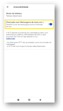 - Em “Acessibilidade” escolha “RTT” e selecione o botão em frente a “Software de RTT” para ativar a funcionalidade.