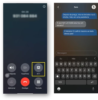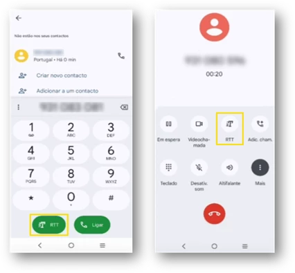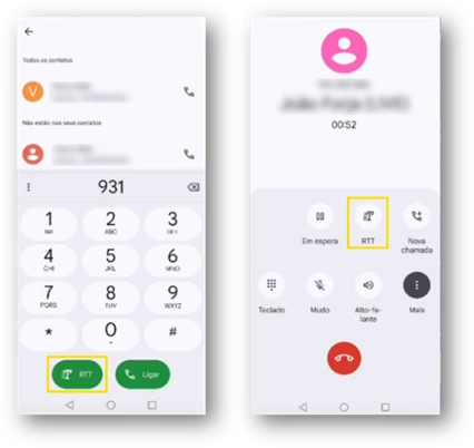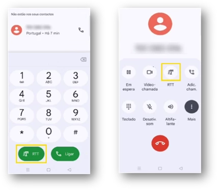 Caso já esteja numa chamada, selecione o “botão RTT” para iniciar esta funcionalidade.