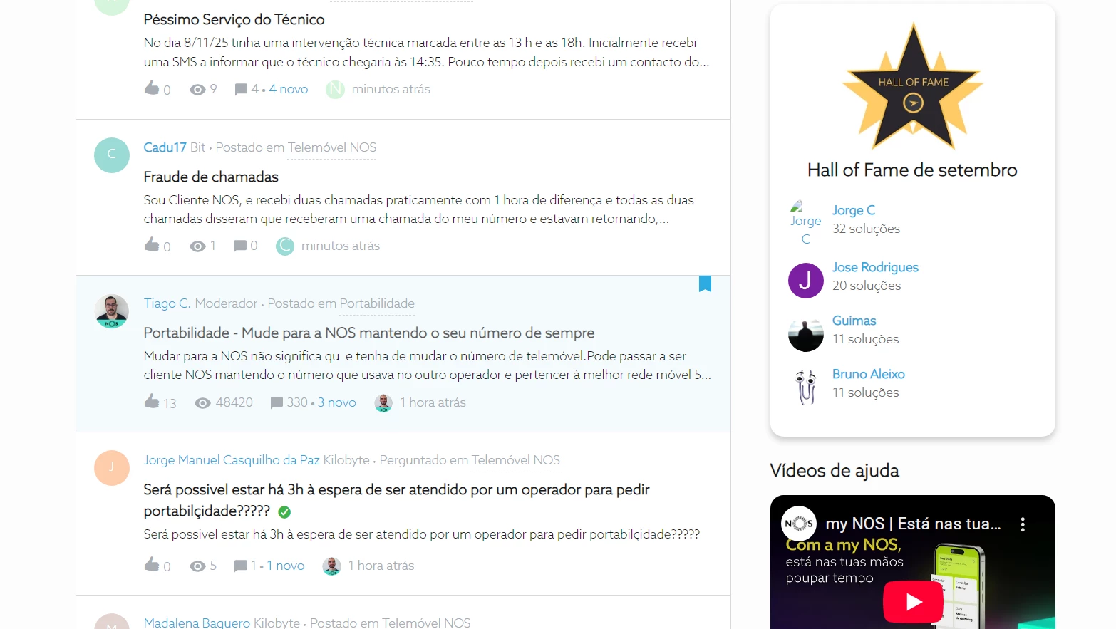 Conheça como funciona o Hall of Fame aqui e consulte, também, todos os vencedores do Hall of Fame do Fórum NOS de meses anteriores!