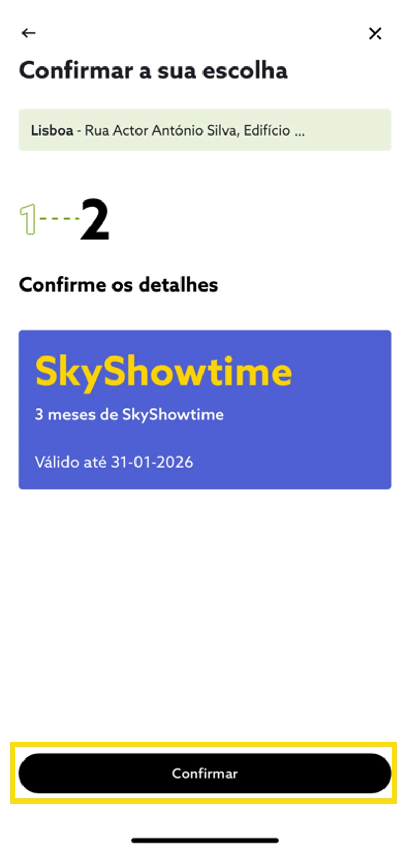 - Confirme os detalhes e selecione “Confirmar”;