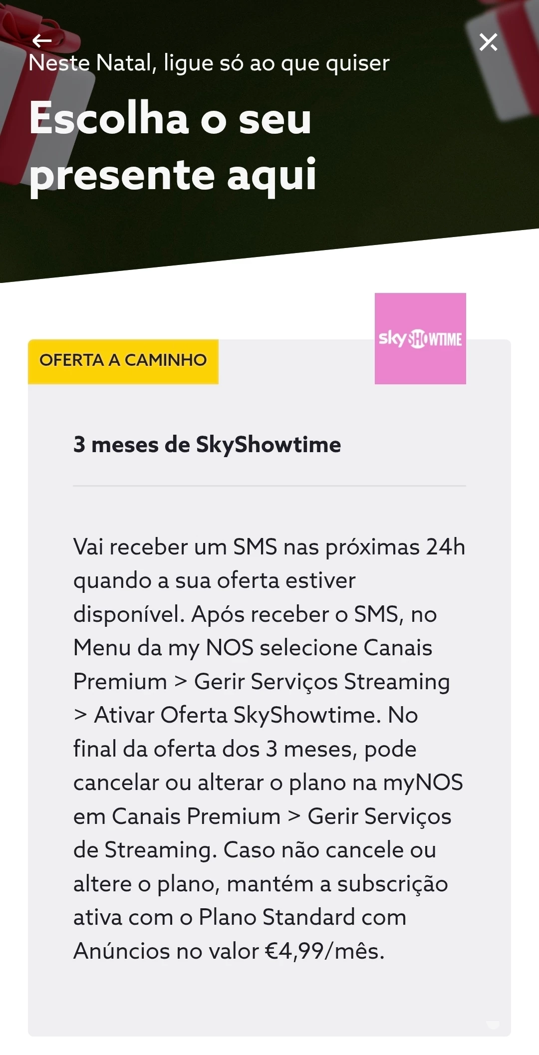 Neste tópico, explicamos como ativar a oferta ativar a oferta de 3 meses de Skyshowtime através da my NOS.