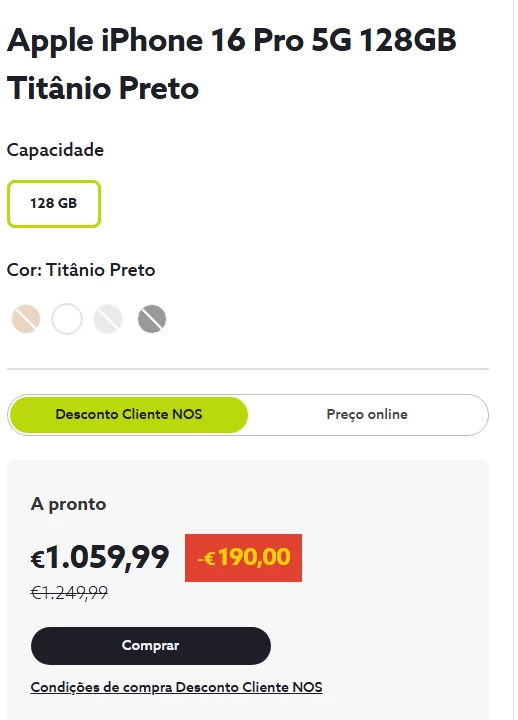 - Escolha o equipamento disponível na gama “Desconto Cliente NOS”;