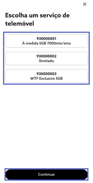 Selecione o número de telemóvel em causa e, de seguida, “Continuar”;