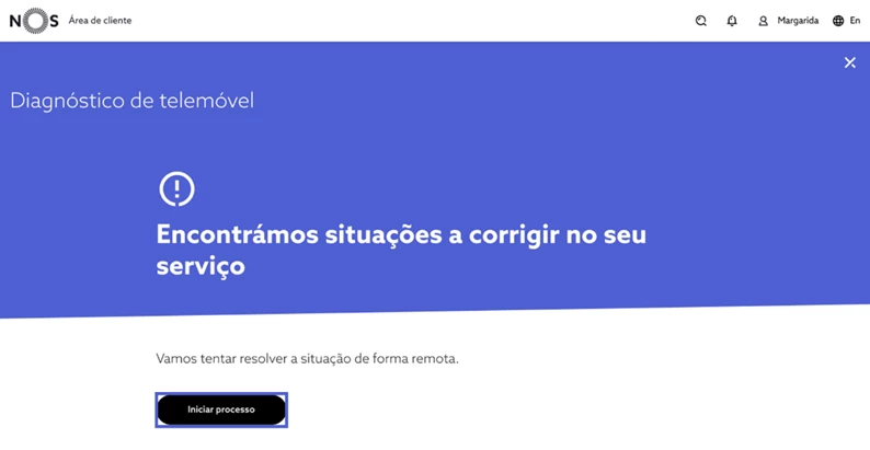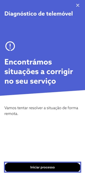 Se forem identificados problemas, escolha “Iniciar Processo” e avance com o processo de resolução automático, sendo que pode ser pedido que realize algumas validações junto do telemóvel;