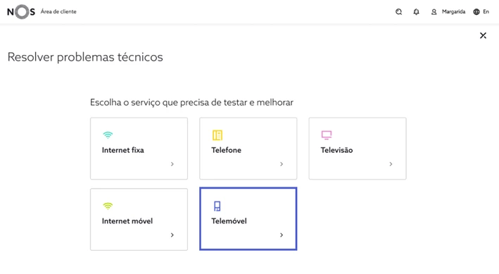 Aceda a my.nos.pt, de seguida, em “Suporte técnico”, selecione “Resolver problemas técnicos”;