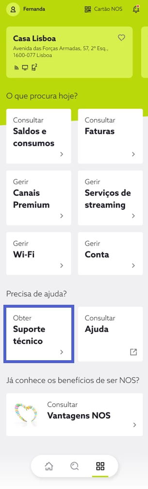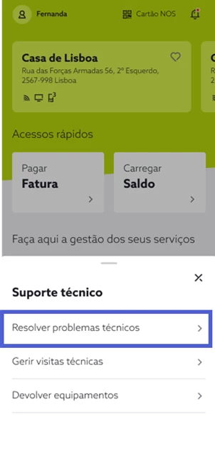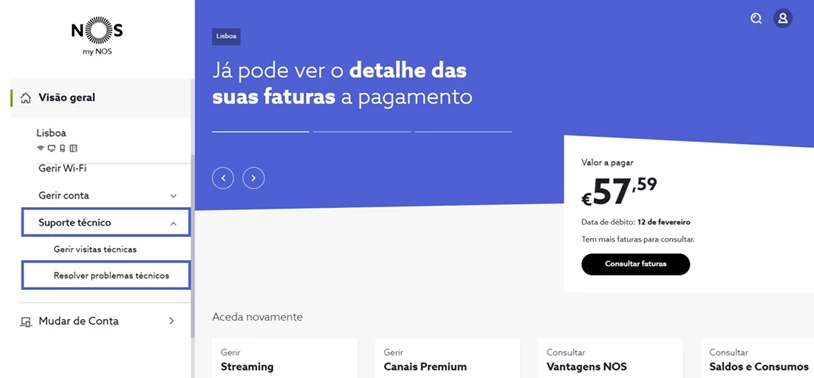 Aceda a my.nos.pt, de seguida, em “Suporte técnico”, selecione “Resolver problemas técnicos”;