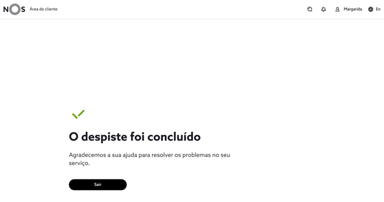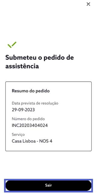 O pedido é submetido automaticamente para ser analisado pela assistência técnica NOS. Selecione “Sair” para concluir.