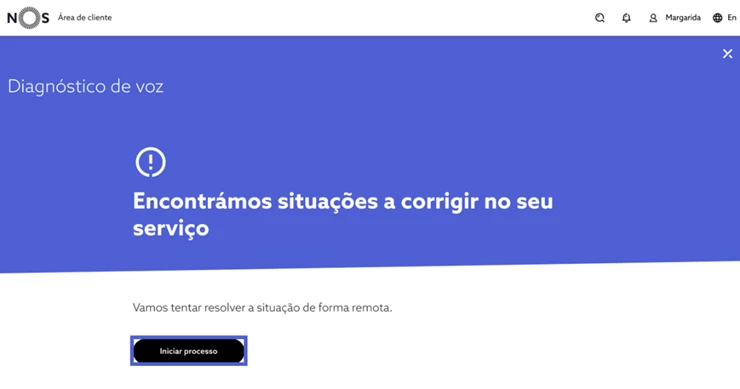 Se forem identificados problemas, escolha “Iniciar Processo” e avance com o processo de resolução automático, sendo que pode ser pedido que realize algumas validações junto do telemóvel;