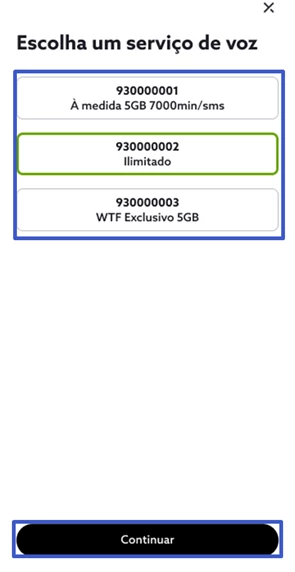 Selecione o número de telemóvel em causa e, de seguida, “Continuar”;
