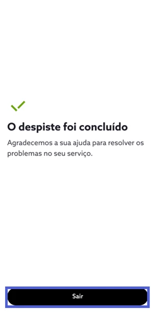 Após seguir os passos, e resolução, recebe a mensagem de que o despiste foi concluído.