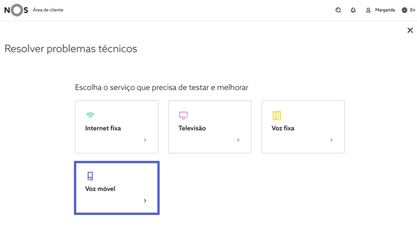 Resolver avarias técnicas de voz móvel em my.nos.pt