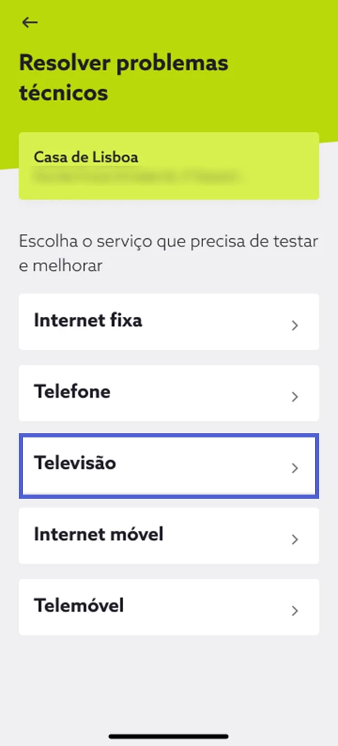 4. Terminado o processo de resolução, experimente novamente o acesso ao serviço de televisão e responda consoante a sua experiência.