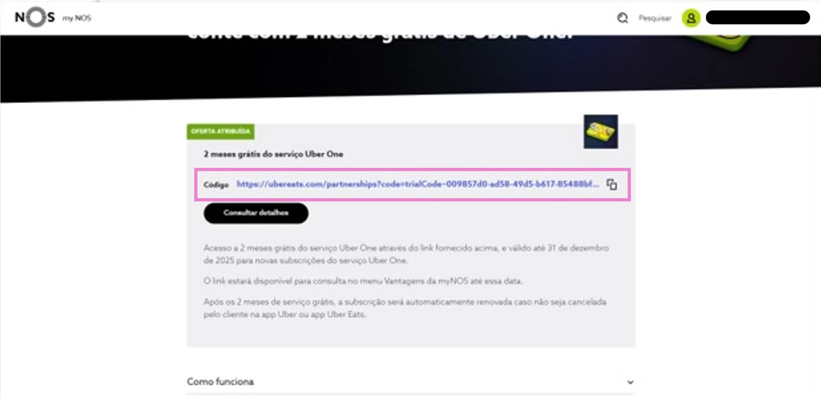 Desde que seja cliente com serviço de televisão, pode aderir à parceria NOS e Uber One através da área Vantagens na app my NOS ou em my.nos.pt.