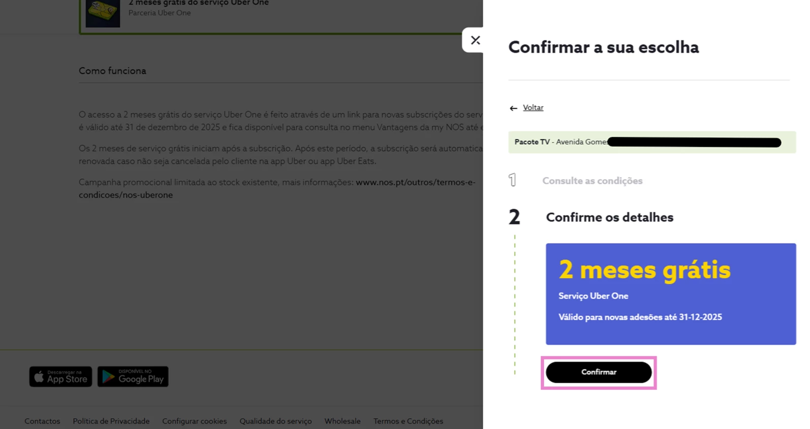 Confirme os detalhes da oferta e validade e de seguida escolha “Confirmar”;