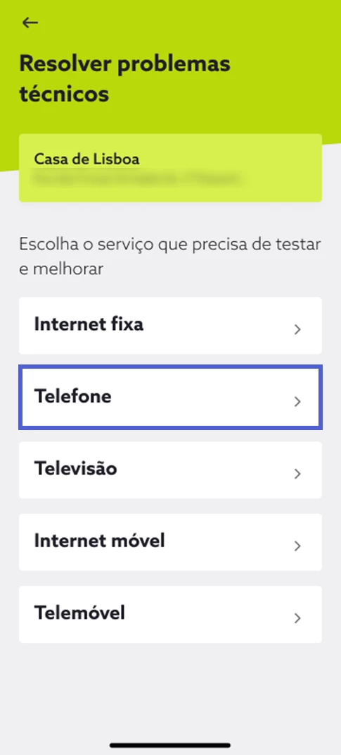 - Terminado o processo de resolução, experimente novamente o acesso ao serviço de telefone fixo e responda consoante a sua experiência.