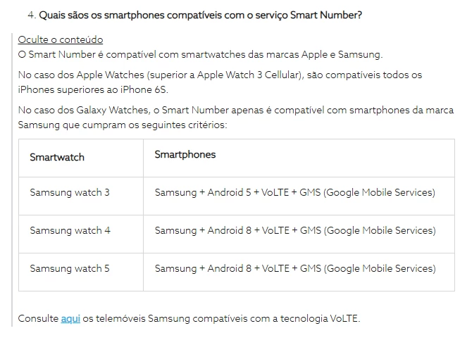 Para associar, ativar e gerir o seu serviço Smart Number através da App Wearable do seu equipamento Samsung aceda a: