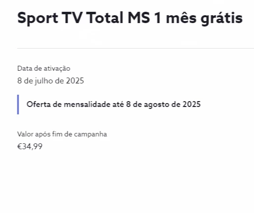 Atualmente, a funcionalidade não se encontra disponível na my NOS.
