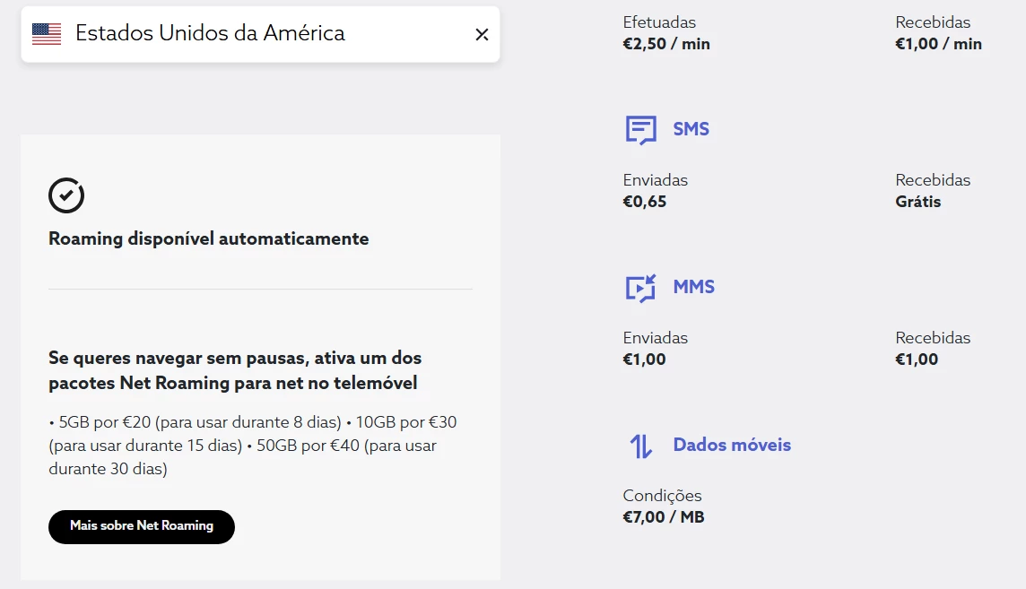 Não houve ativação de qualquer serviço de roaming;