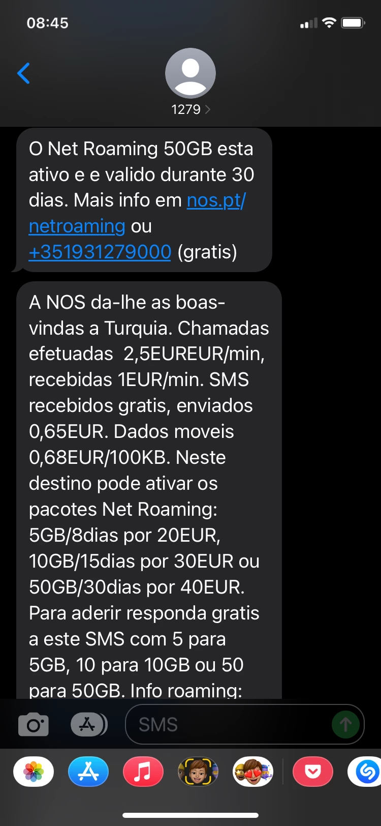 Recebi uma mensagem, ao aterrar na Tailândia, da utilização do total do roaming que paguei (50GB), o que é impossível pois apenas gastei uns 4 ou 5 GB. Pretendo esclarecimentos e soluços porque encontro-me a necessitar dos dados móveis.