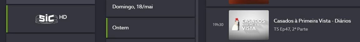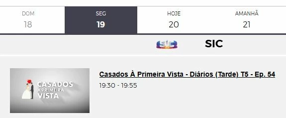 Estou a contactar porque tenho verificado que o programa CASADOS À PRIMEIRA VISTA, do canal generalista SIC, tem um erro na emissão dos sábados. O programa diário transmitido ao sábado é sempre igual ao episódio transmitido na sexta-feira.