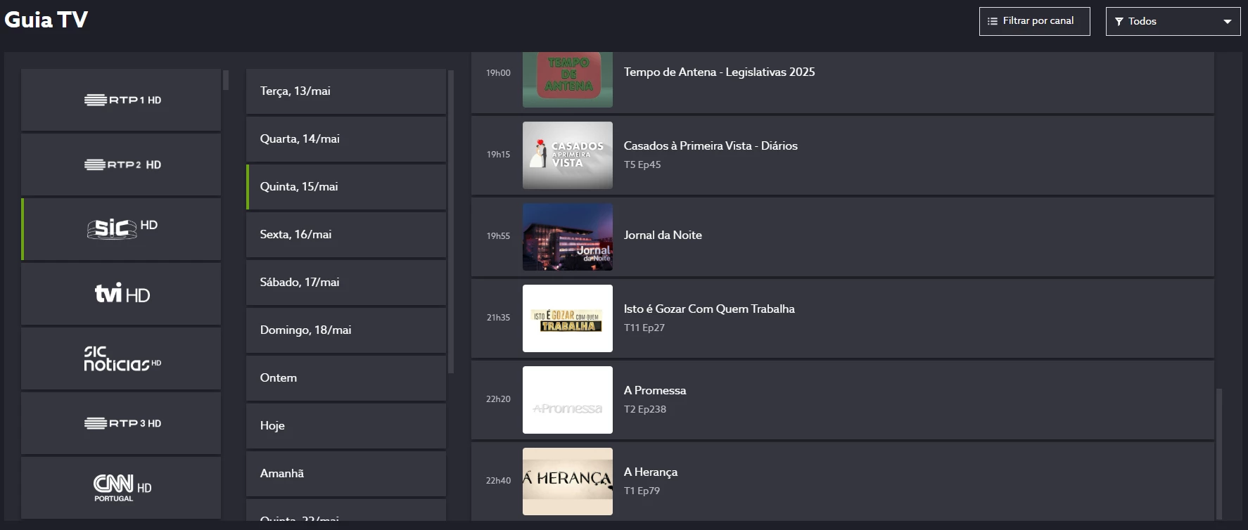 Já questionei a SIC, que me indicou que essa questão está relacionada com a operadora de serviço de televisão que tenho, conforme transcrevo: